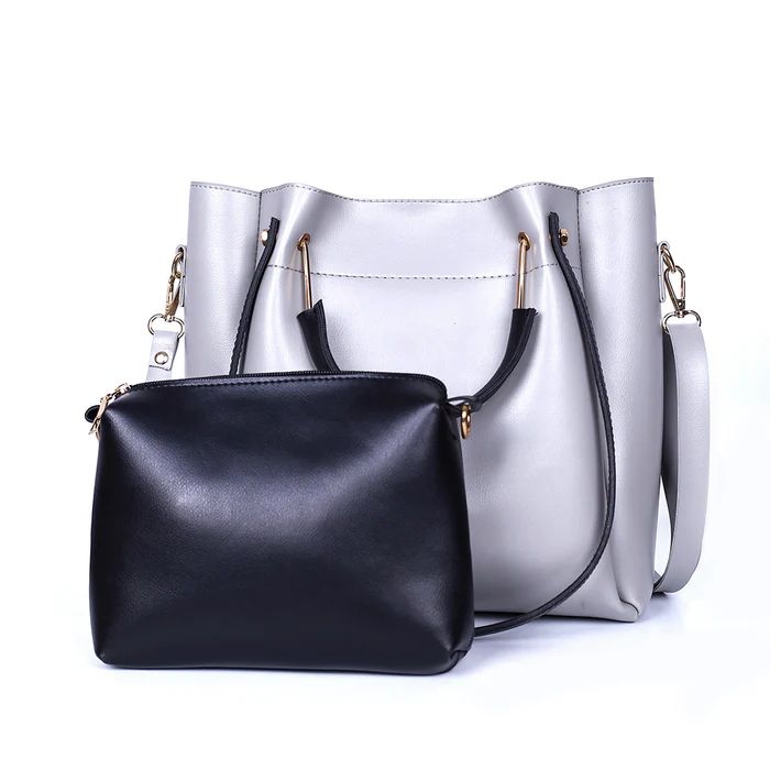 Elevate your accessory game with the Job Joy Grey and Black 2 Pcs Handbag set, designed for the fashion-savvy woman who values both style and functionality.